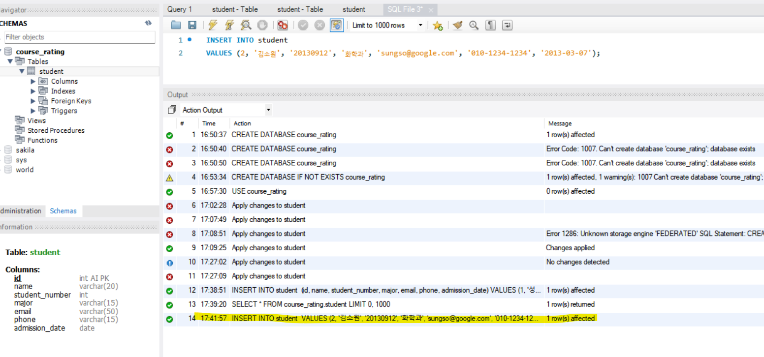 이렇게 로우를 추가할 때는 두 테이블의 컬럼 구조가 일치해야함.
