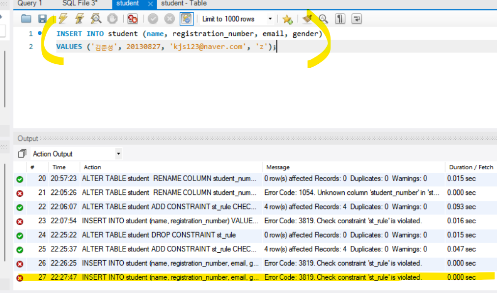결론 : 참조무결성을 깨는 row는 아예 추가가 되지 않음.