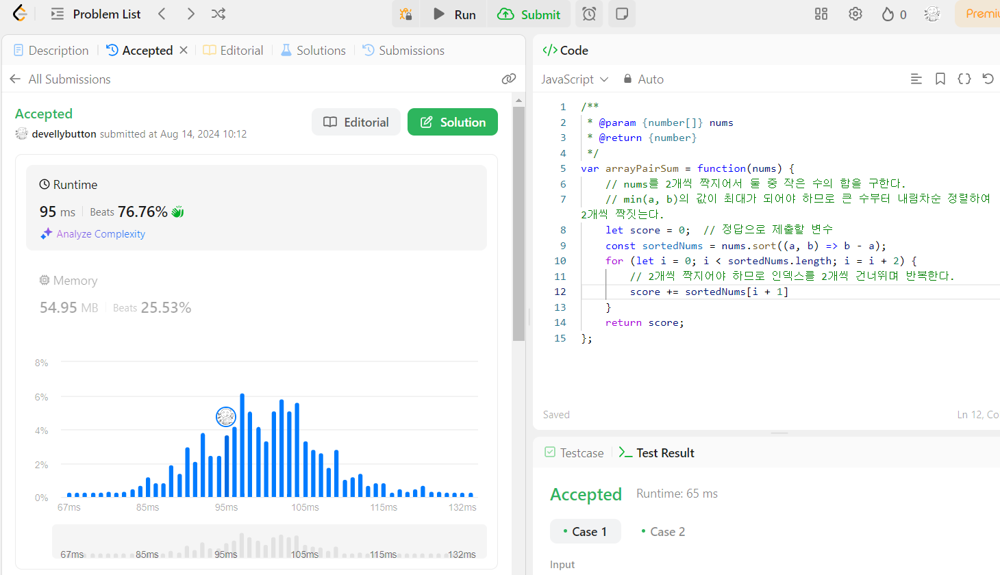 - 따라서 Math.min 연산을 생략하고 짝수번째 인덱스의 값만 더해도 된다.