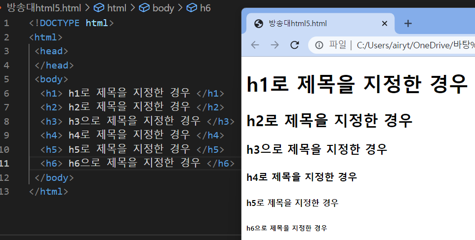 제목 크기 → h1 > h2 > h3 > h4 > h5 > h6 (큼 → 작음)