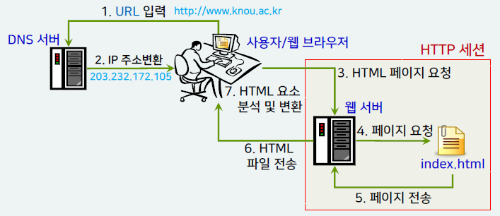 | HTTP | 웹 서버와 웹 클라이언트 간의 필요한 데이터를 주고 받기 위한 통신 규약 |