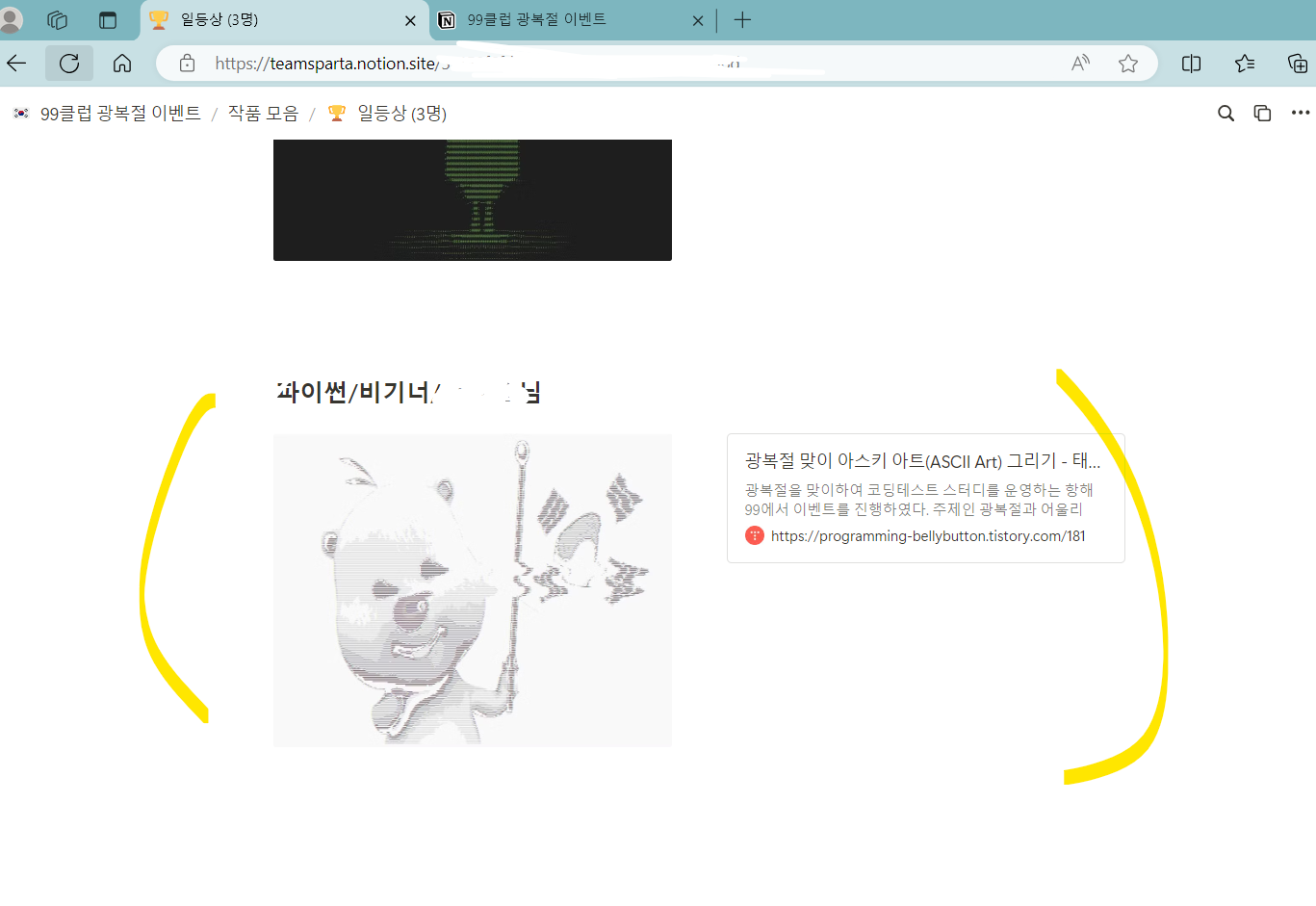 주제인 광복절과 어울리는 아스키 아트 그림 한 장을 그려서 제출하는 것이었다.