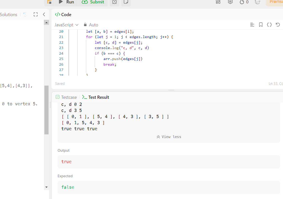 - source에서 destination까지의 경로가 있는지 순서대로 검증하지 않는다. 지금 내 풀이에서 경로의 일부분만 확인하여 true, false를 판단하고 있다.