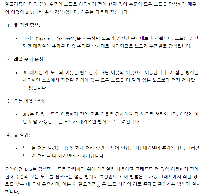참고로 이게 왜 BFS인지에 대해서 GPT가 답변을 이렇게 해줬다.