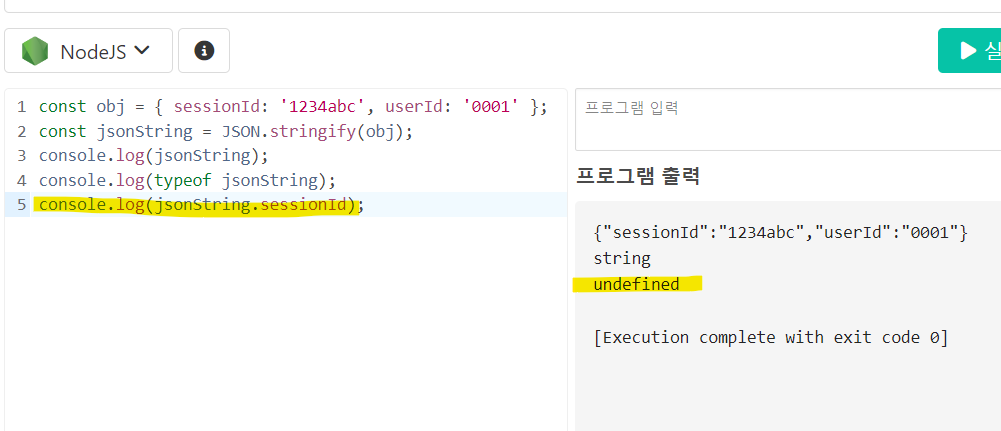 왜냐하면 변환된 JSON은 문자열 타입이므로 이 sessionId와 userId라는 key에 접근을 할 수 없다. 그냥 문자 그대로로 인식이 된다.