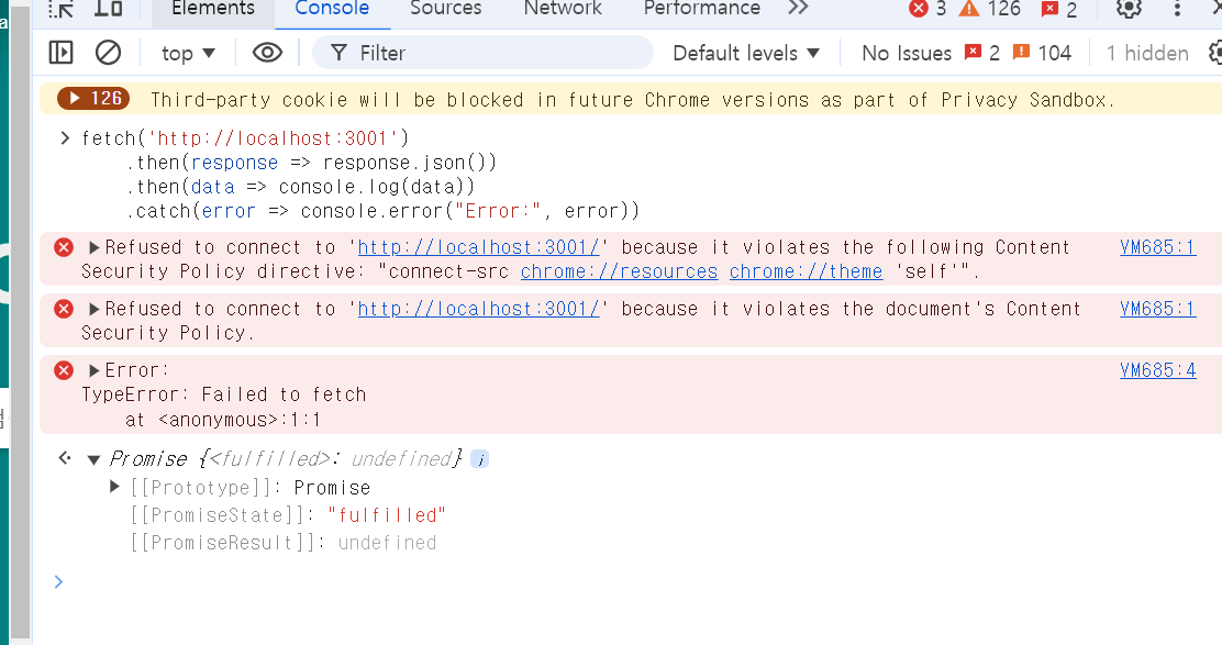 Chrome 브라우저에 직접 스크립트를 입력하니 에러가 났다.