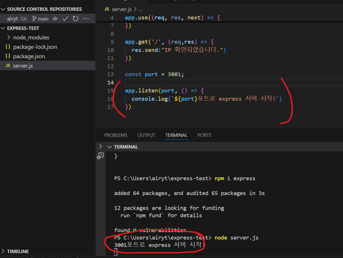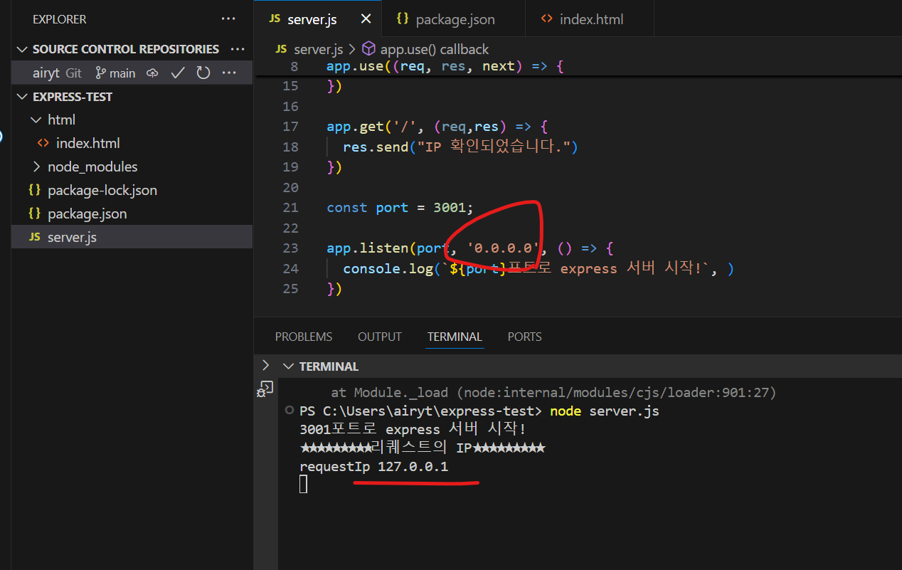 - 이때 app.listen(port, '0.0.0.0') 추가하면 IPv4로 변경 가능