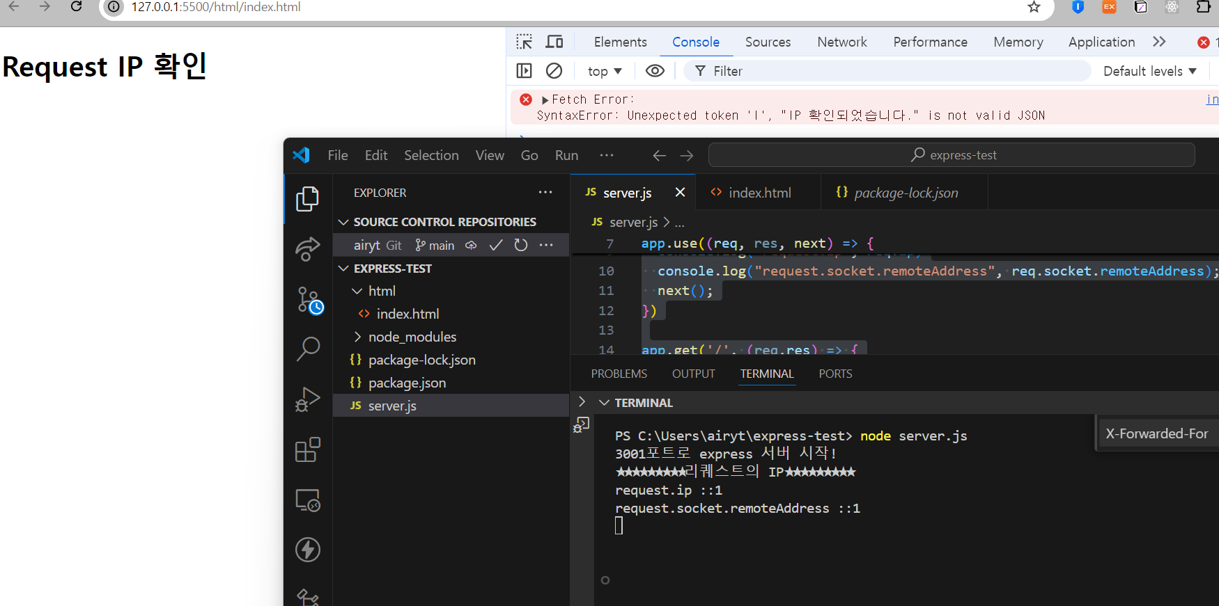 - request.socket.remoteAddress : net.Socket 객체의 속성, 클라이언트 ip를 직접 반환