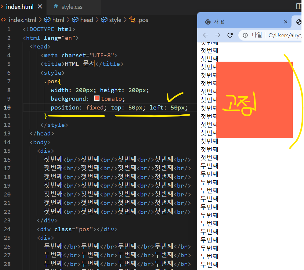 위치 지정 요소(positioned element) : position 속성이 정의되어 있는 요소