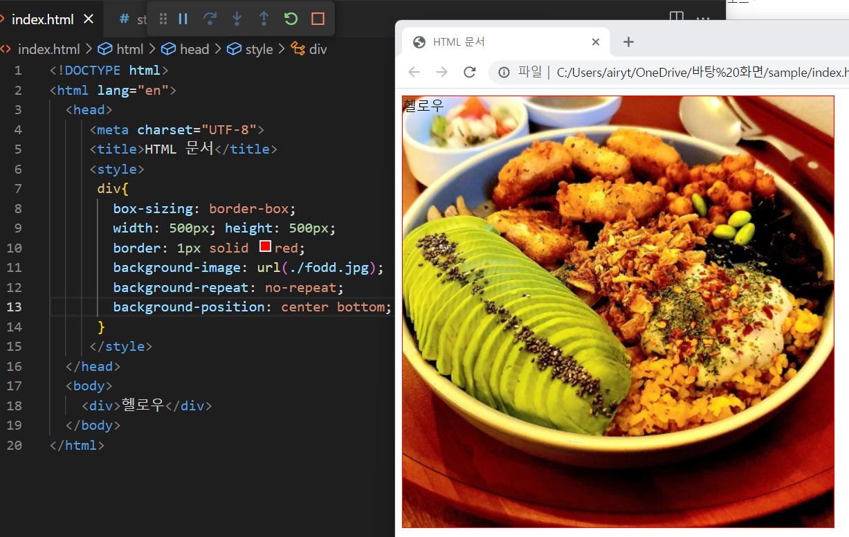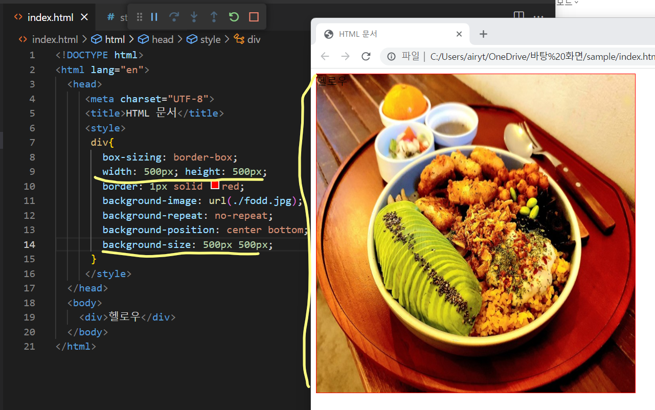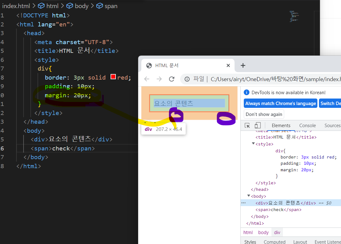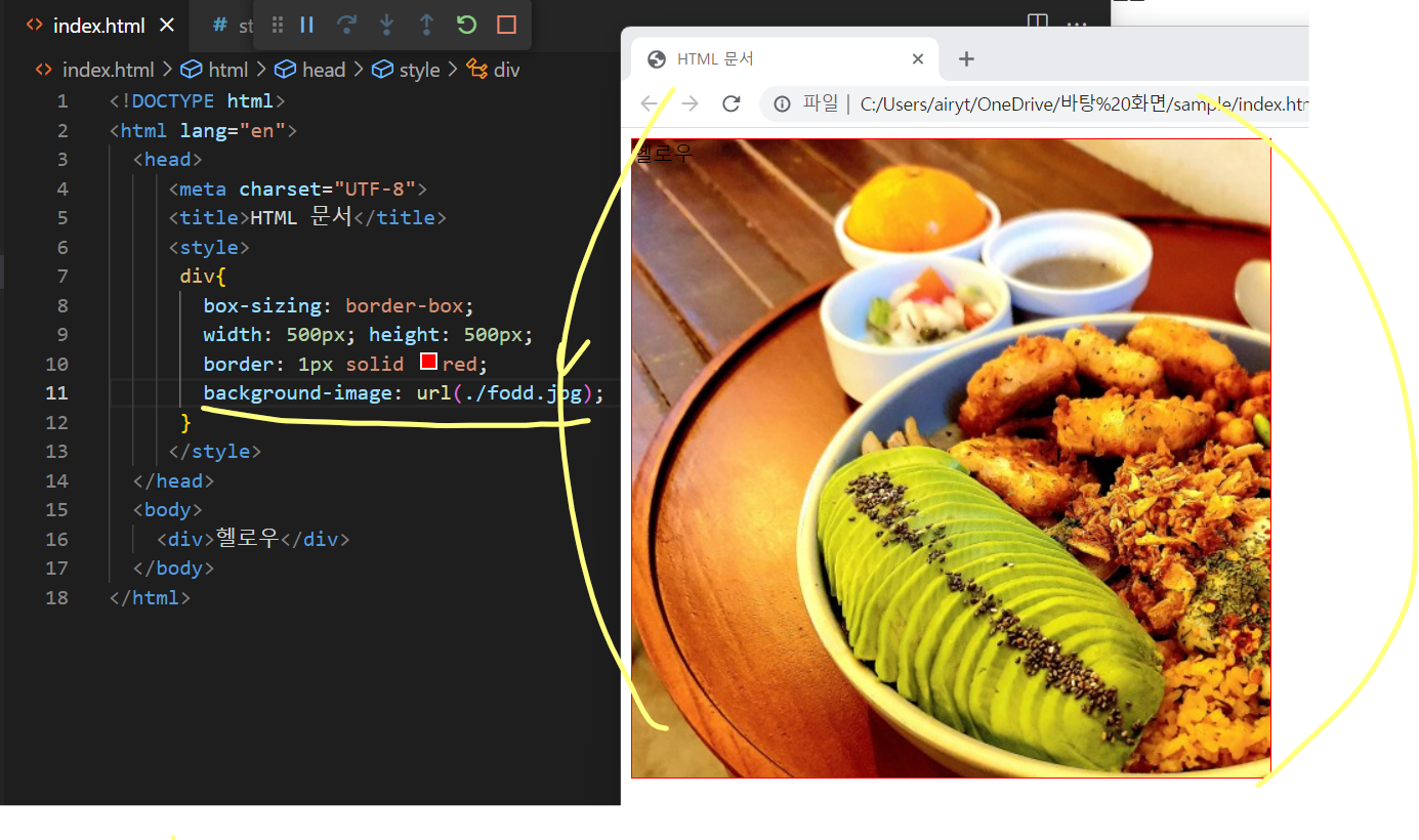 - CSS : 웹 문서의 콘텐츠에 스타일을 추가하는 언어 (색상, 크기, 위치 등)