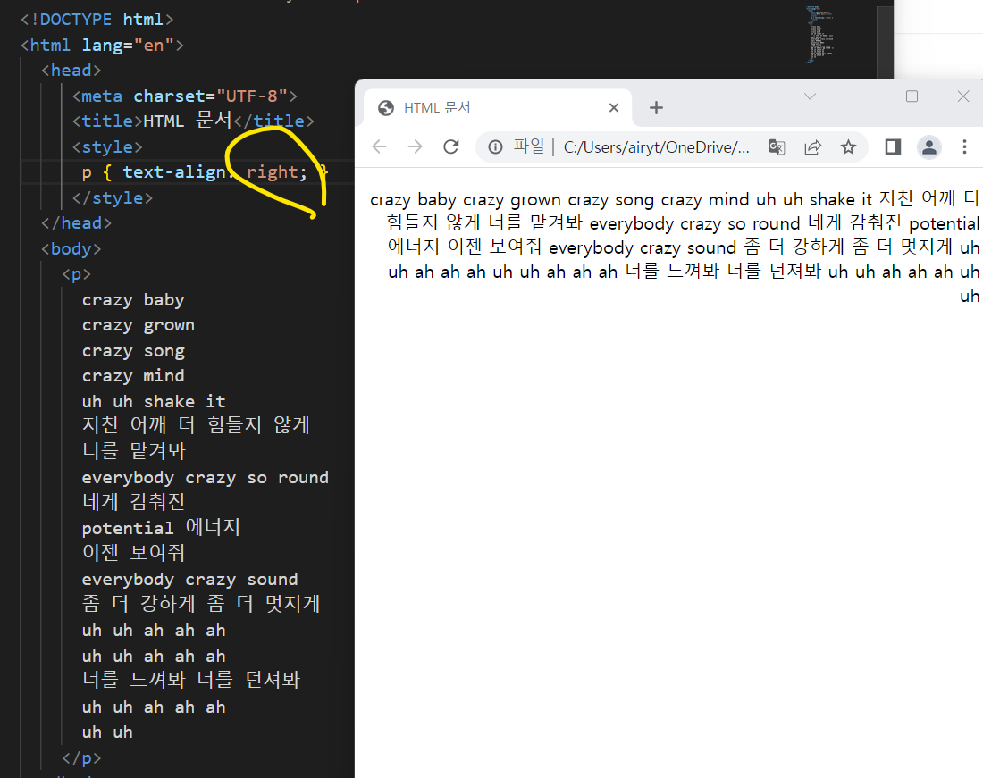 • {중괄호} : 이 안에 p태그에 대한 스타일을 정의하겠다.