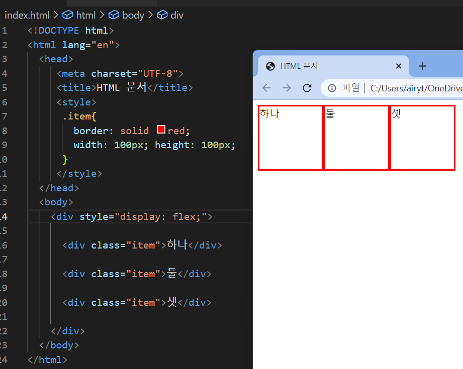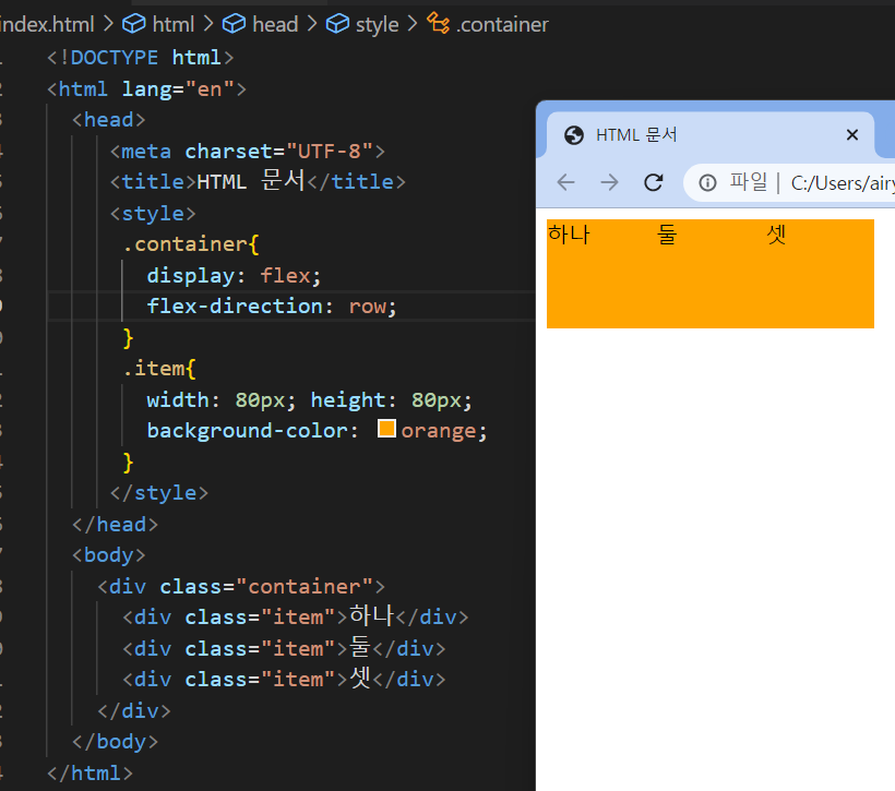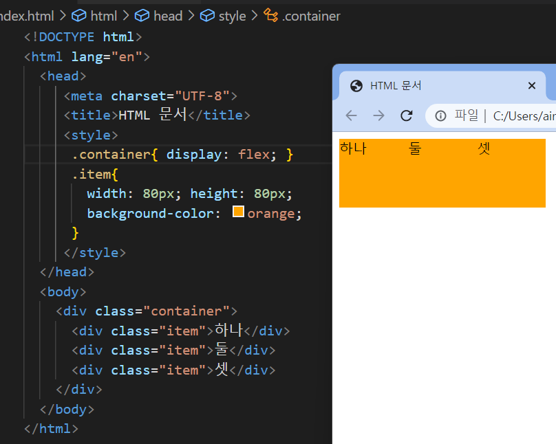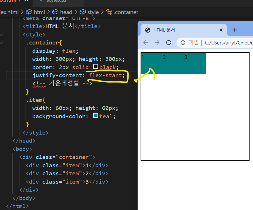 justify-content: flex-start (요소를 앞쪽에 몰아넣기)
