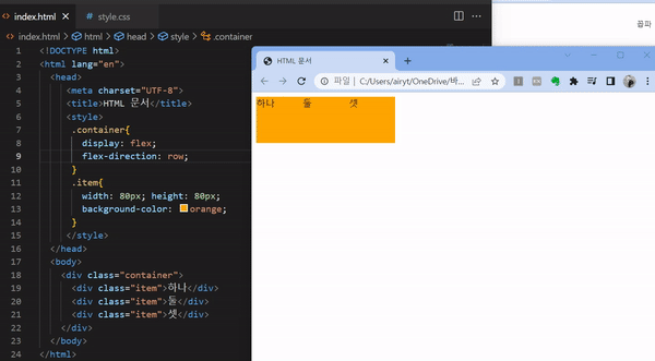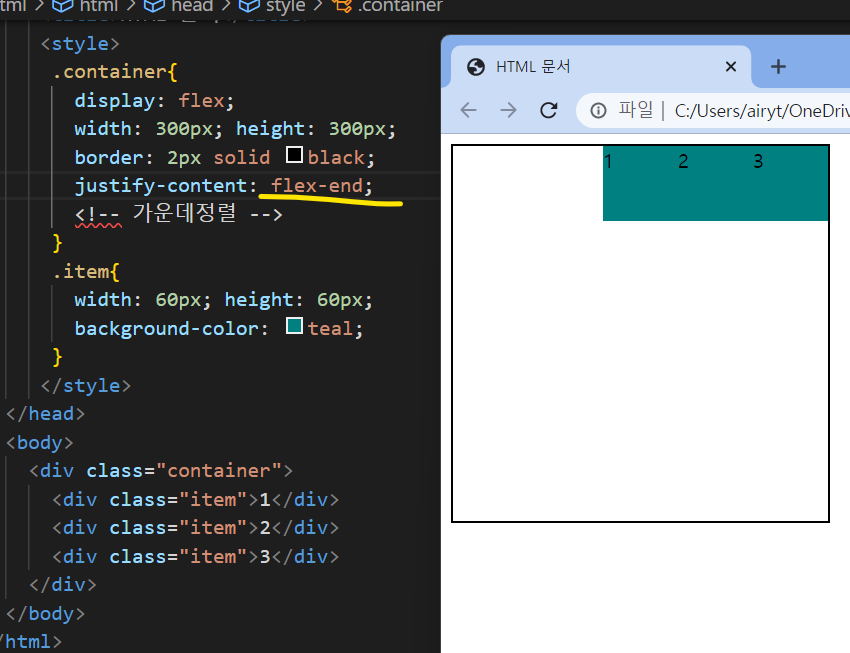 justify-content: flex-end (요소를 끝쪽에 몰아넣기)