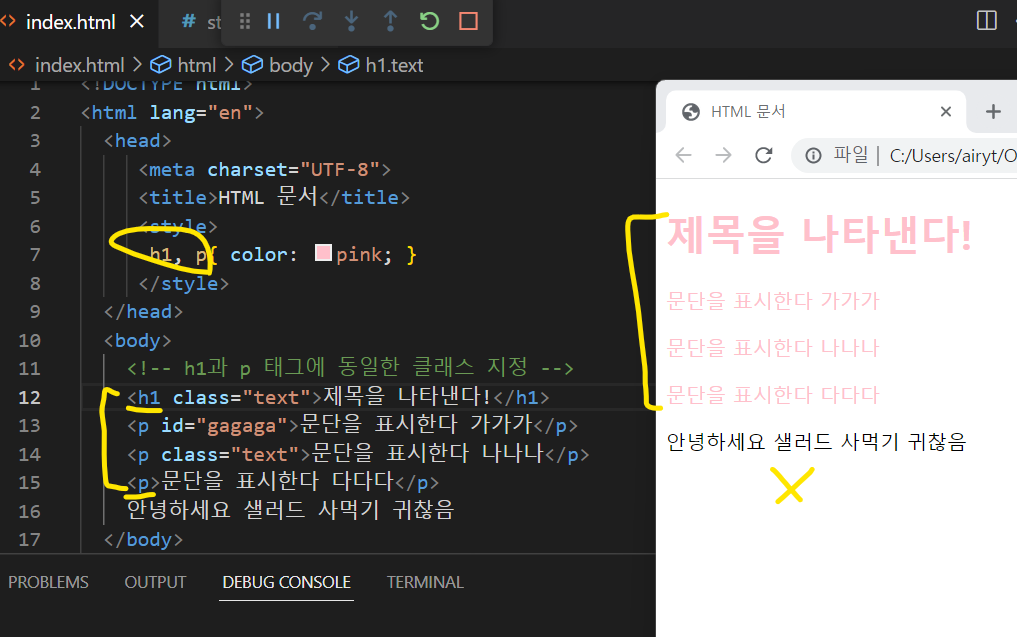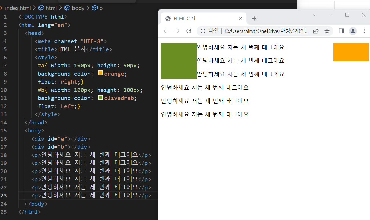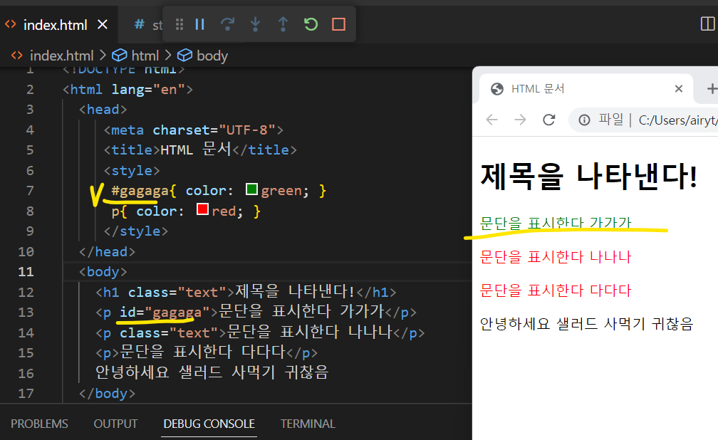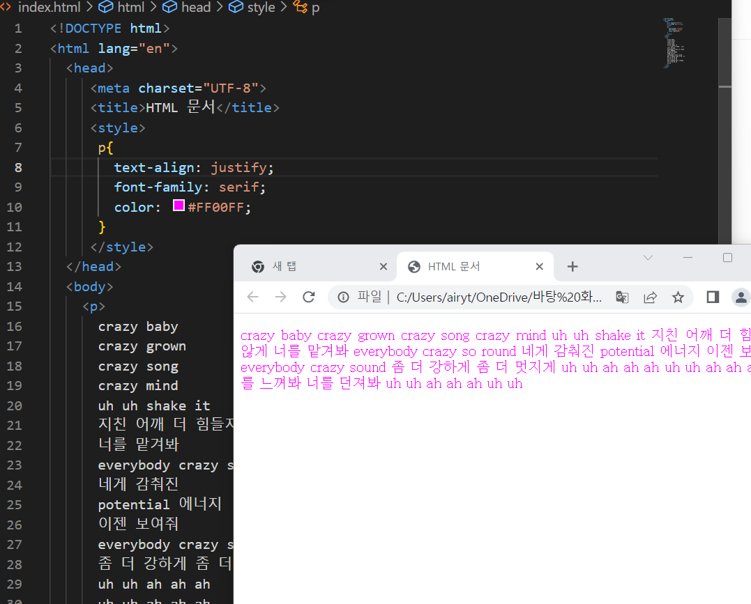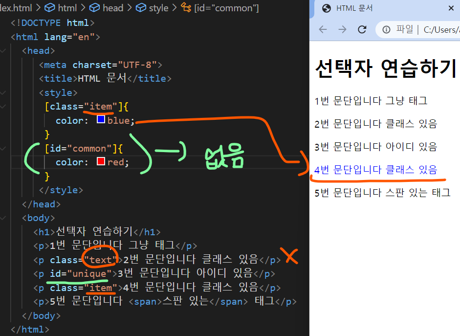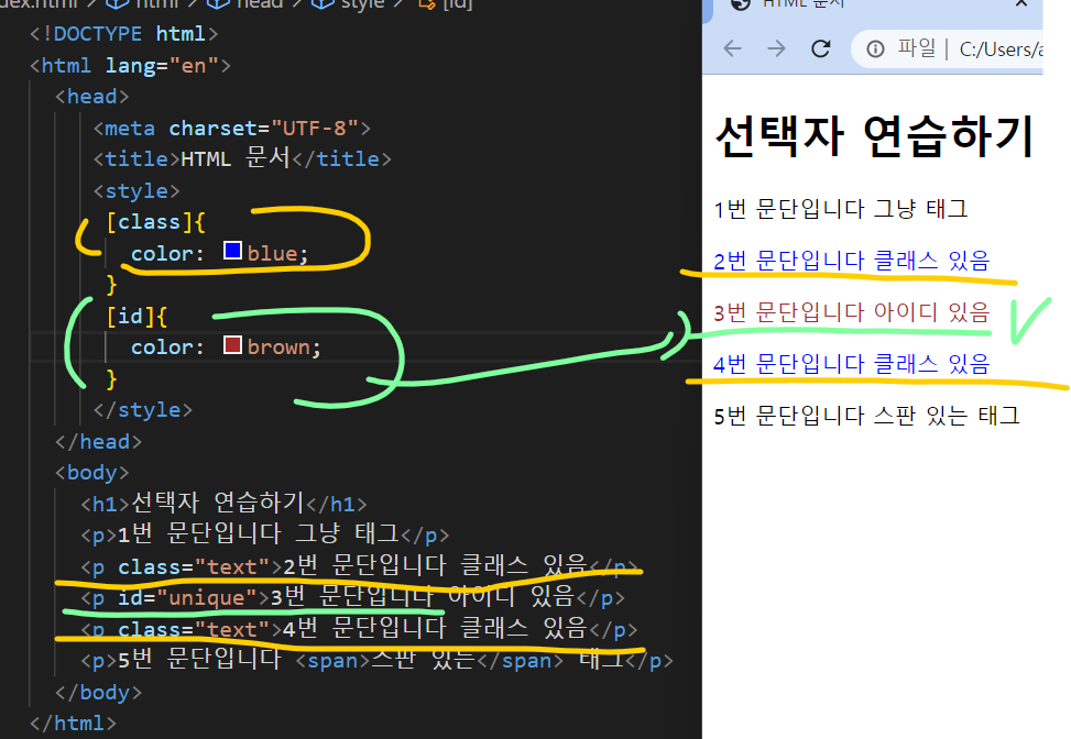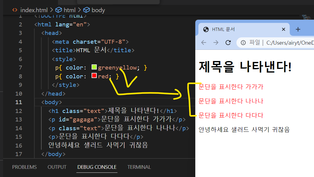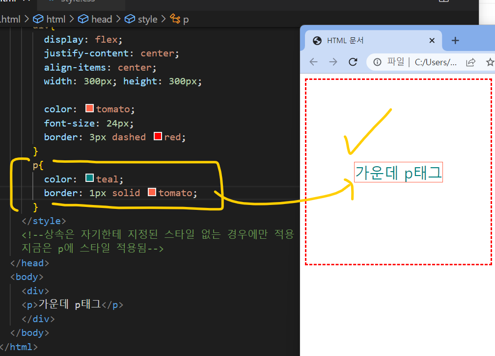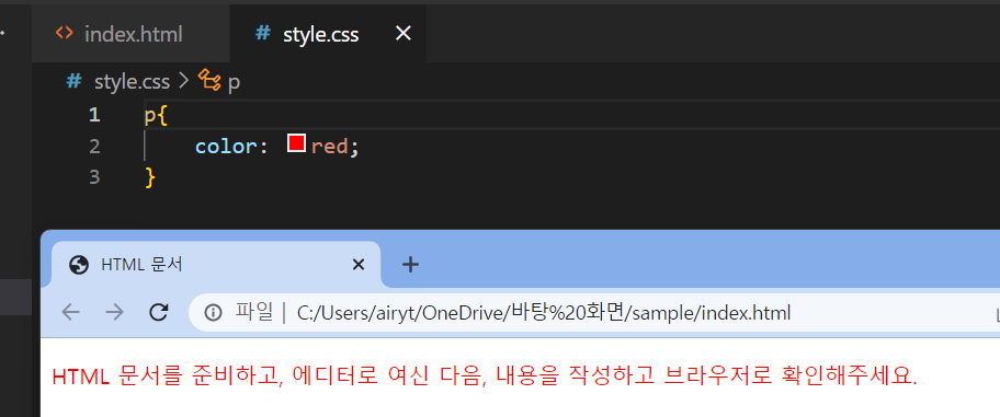 • 선택자 : p태그에 스타일을 적용하겠다.