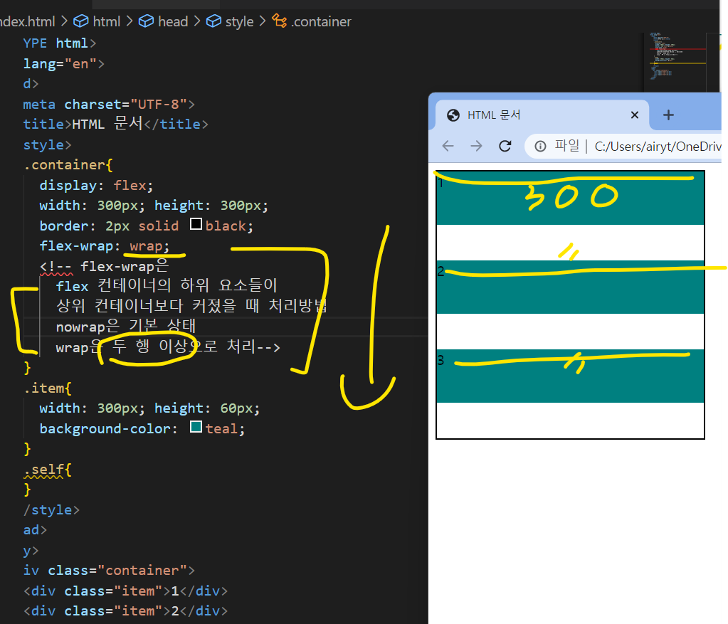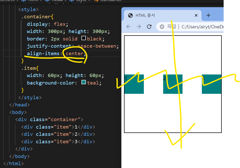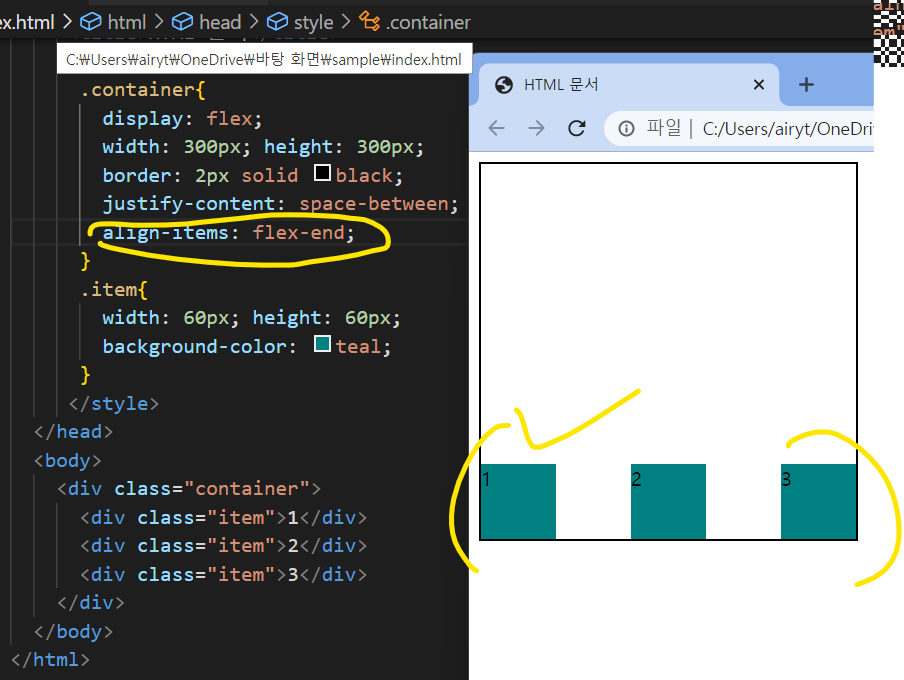 align-items: flex-end; (교차축 맨 끝에 정렬함)