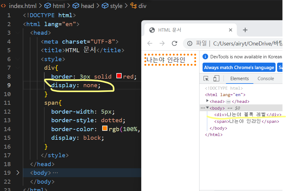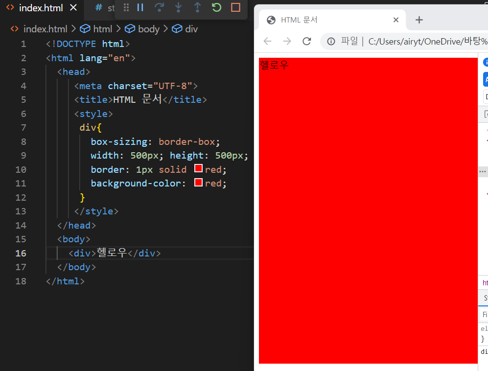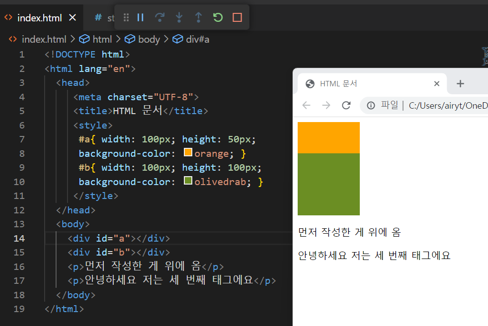 - CSS 문서(코드) 자체는 독립적으로 존재할 수 있지만, 그 목적이 구조화된 HTML 문서의 스타일을 정의하는 데 있으므로 HTML 문서가 없는 CSS 문서는 사실상 의미가 없음.