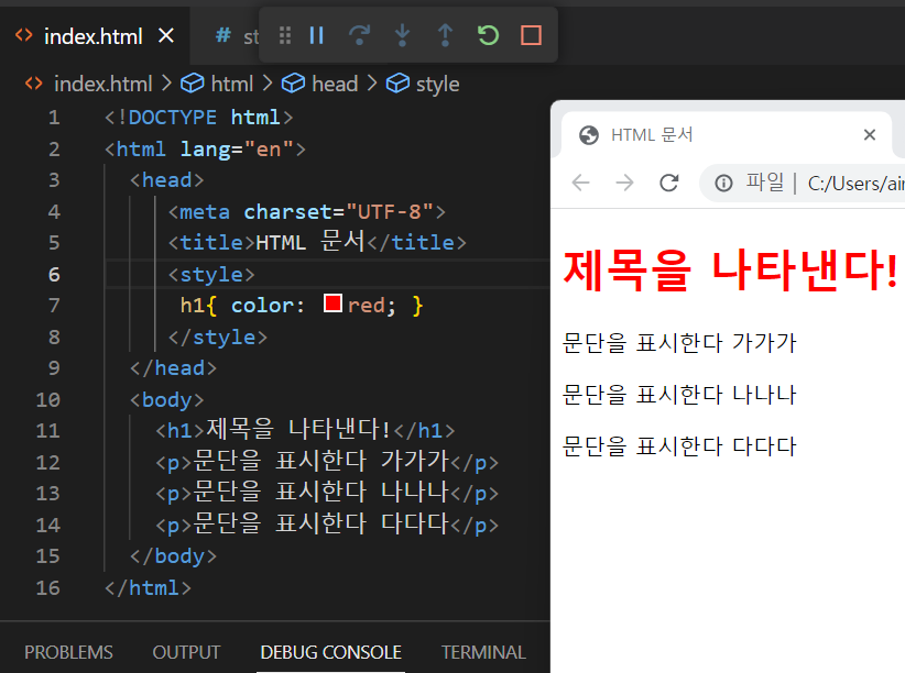웹브라우저를 통해 결과물을 확인하기 위해서는 반드시 HTML 문서 작성이 선행되어야 함.