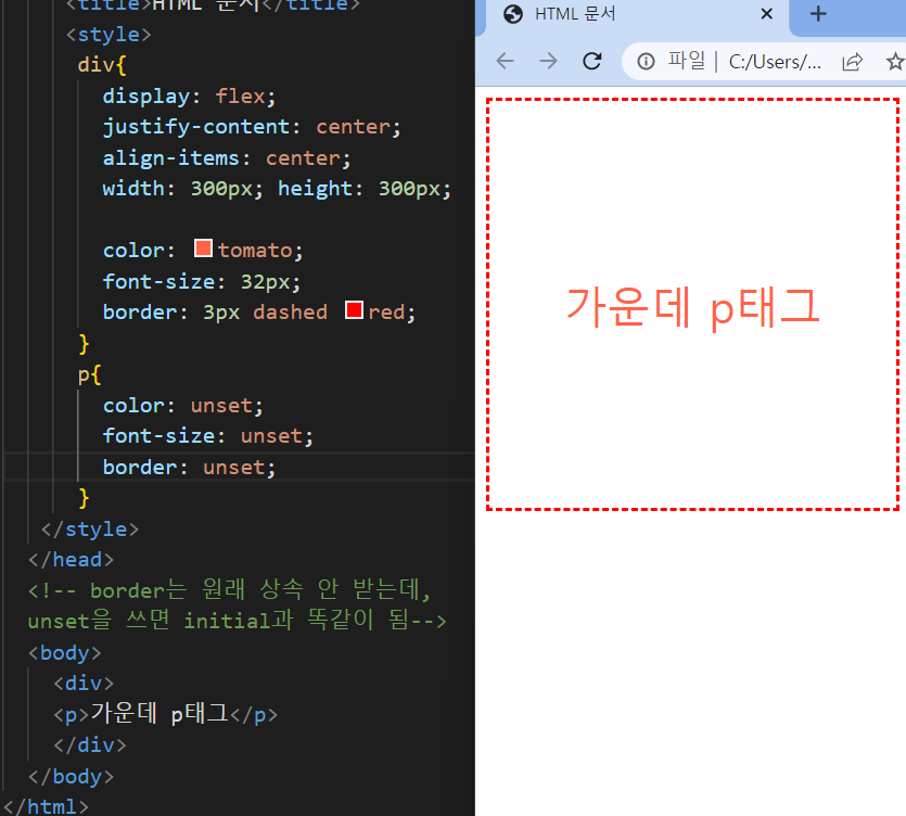 unset : 상속 속성에 대해서는 inherit처럼, 상속되지 않는 속성에 대해서는 initial처럼 적용된다.