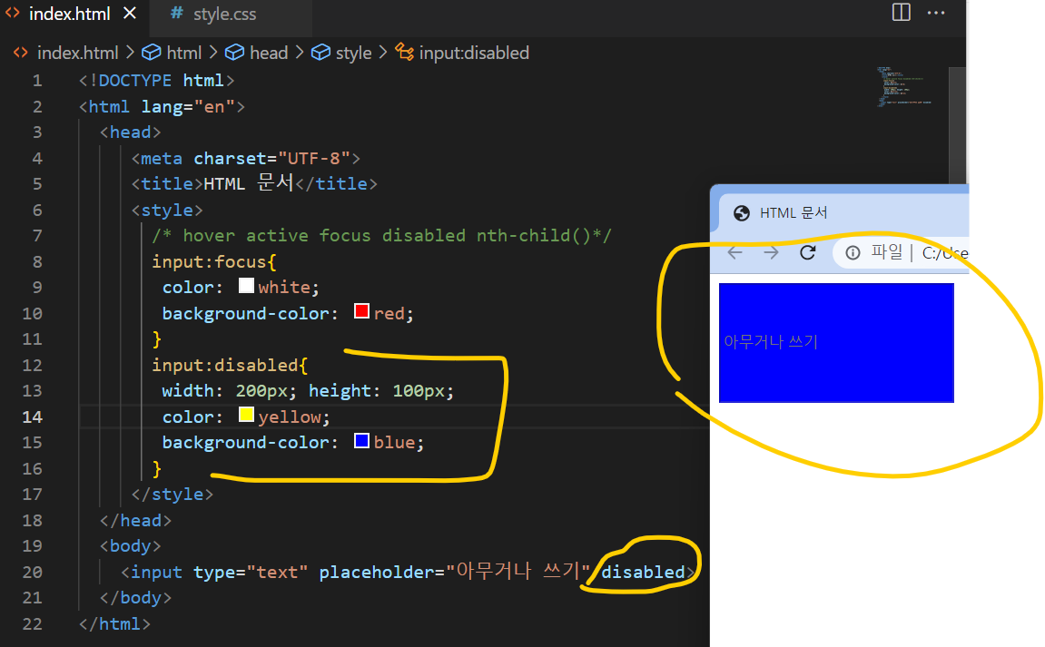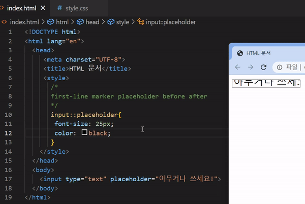 placeholder : 입력 요소의 플레이스홀더(자리표시자) 스타일을 적용
