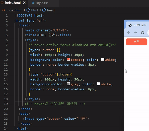 hover : 마우스 포인터가 요소에 올라가 있다.