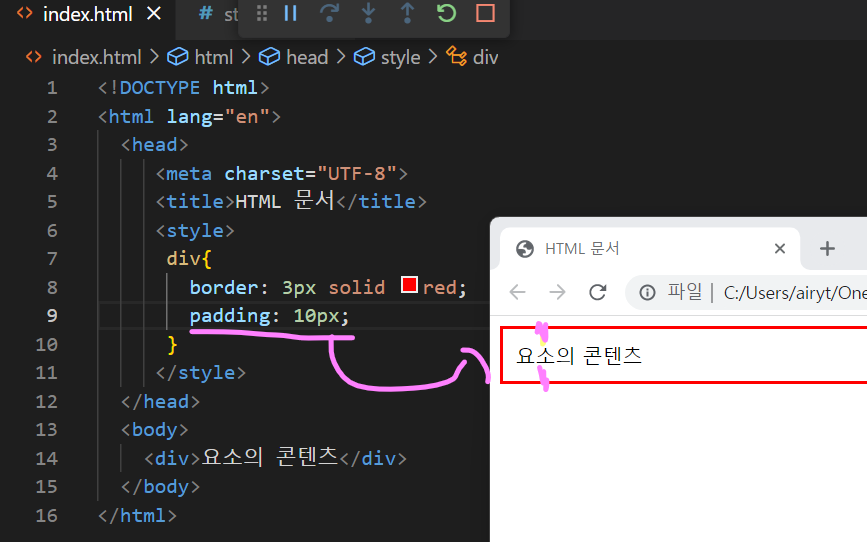 HTML 문서에 <style></style> 태그를 추가하여 그 안에 CSS 코드를 작성할 수 있음.