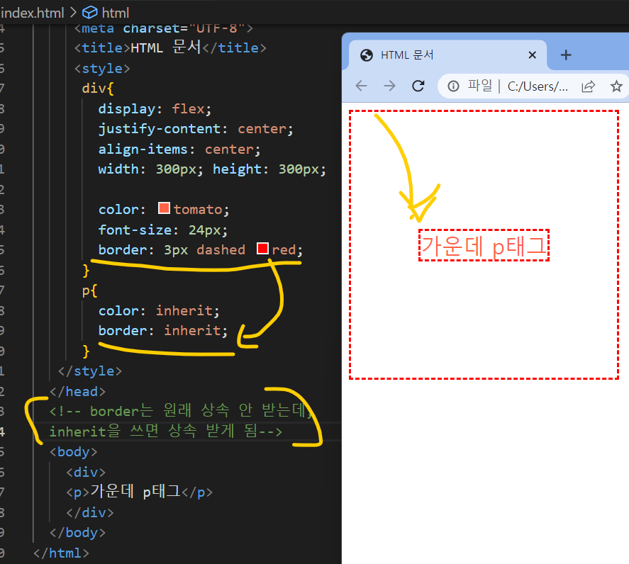 inherit : 상위 요소로부터 해당 속성의 값을 받아 사용한다.