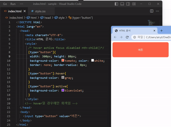 active : 사용자가 요소를 활성화했다. (예를 들면, 마우스로 누르기와 같은)