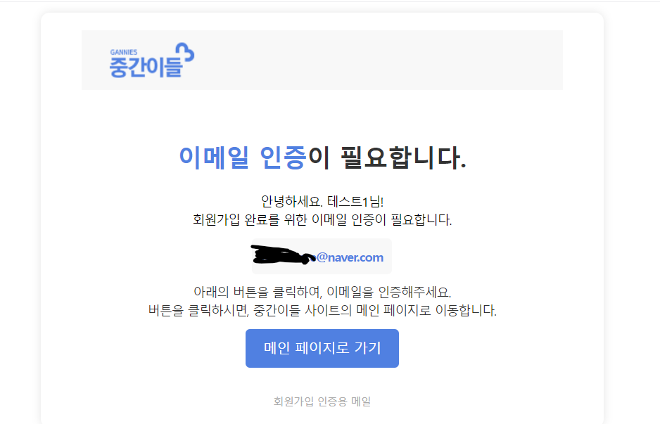 <p>회원가입 인증용 메일</p>