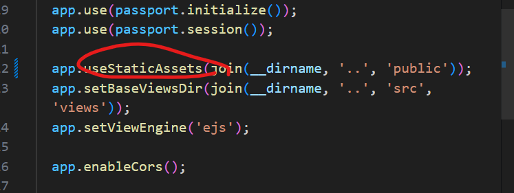 - useStaticAssets 메서드로 ejs가 속해 있는 폴더의 경로를 설정한다.