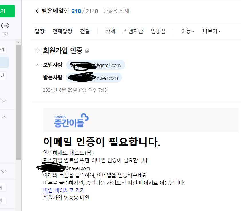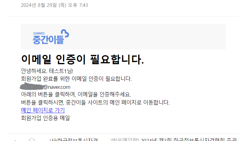 - 이메일 인증 링크는 정상적으로 동작함.
