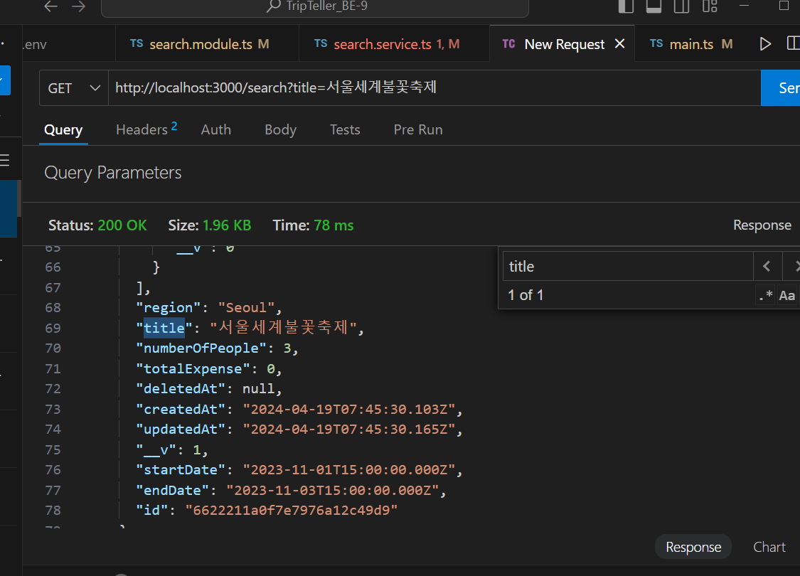 결과 : 원하던 대로 title과 일치하는 제목을 가진 글만 1개 나옴.