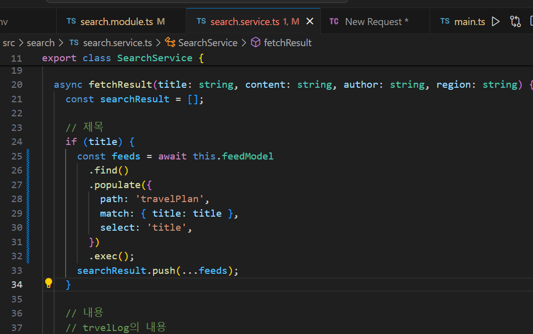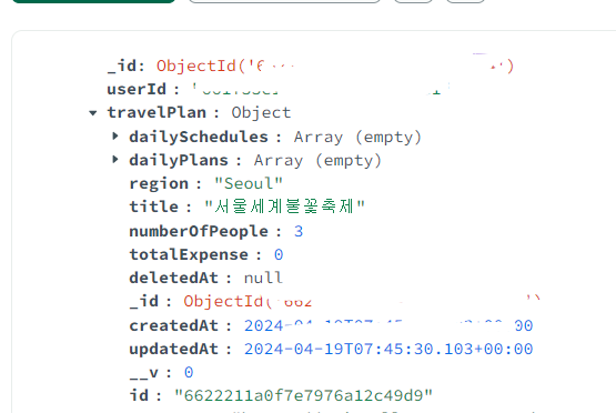 상황 : feed 모델 안에 travelPlan 모델을 populate한 상태임.