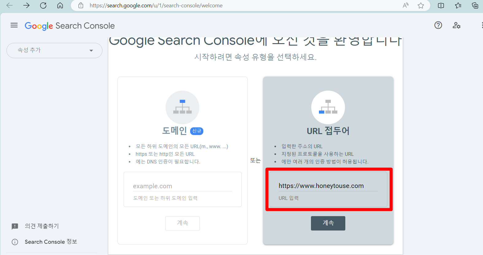 여기서 도메인 혹은 URL 접두어를 입력하면 된다.