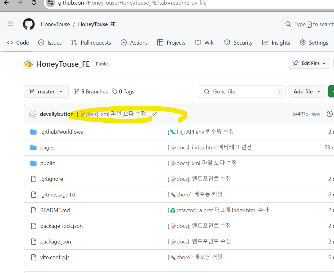 "꿀단집"으로 검색하였을 때는 우리 프로젝트와 관련된 내용이 보이지 않았다.