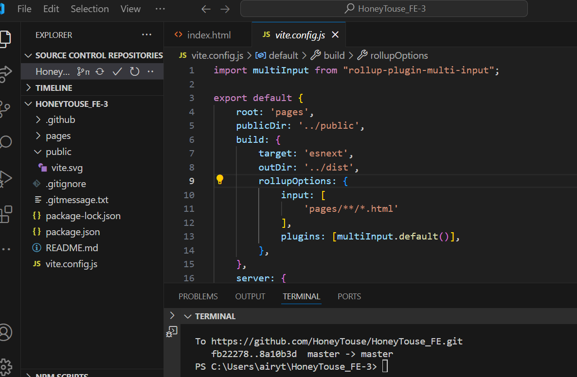 rollupOptions: { // vite는 내부적으로 rollup을 사용하여 빌드를 처리
