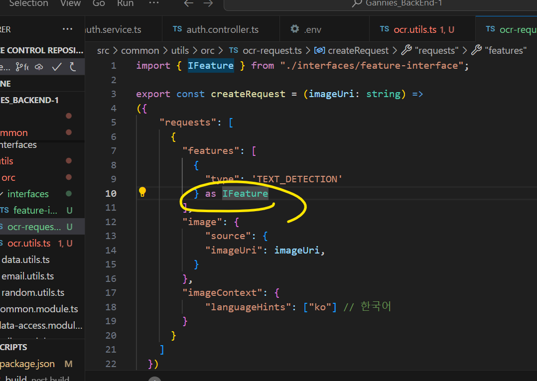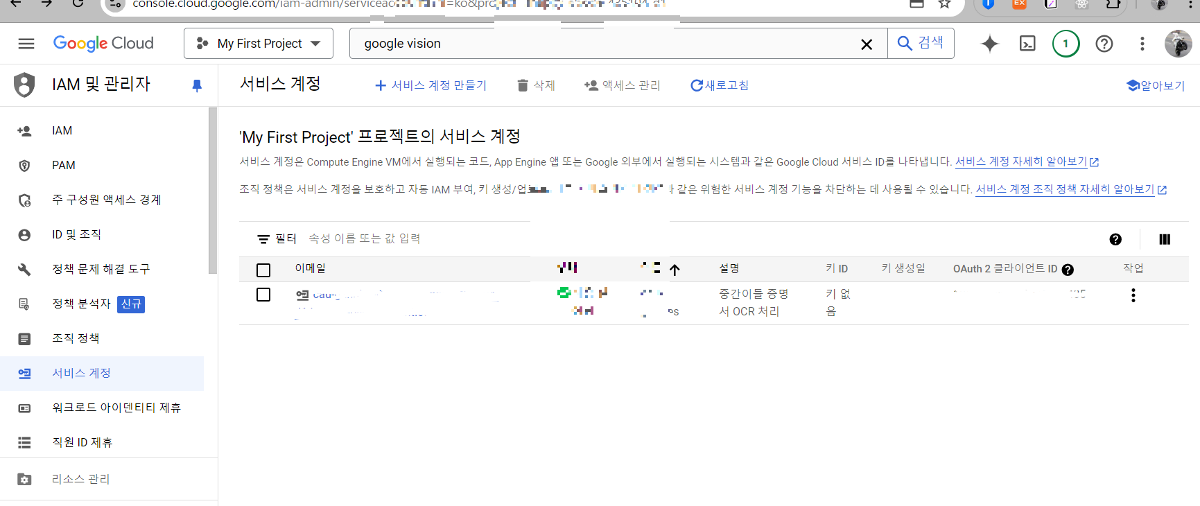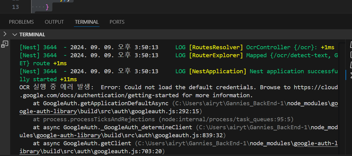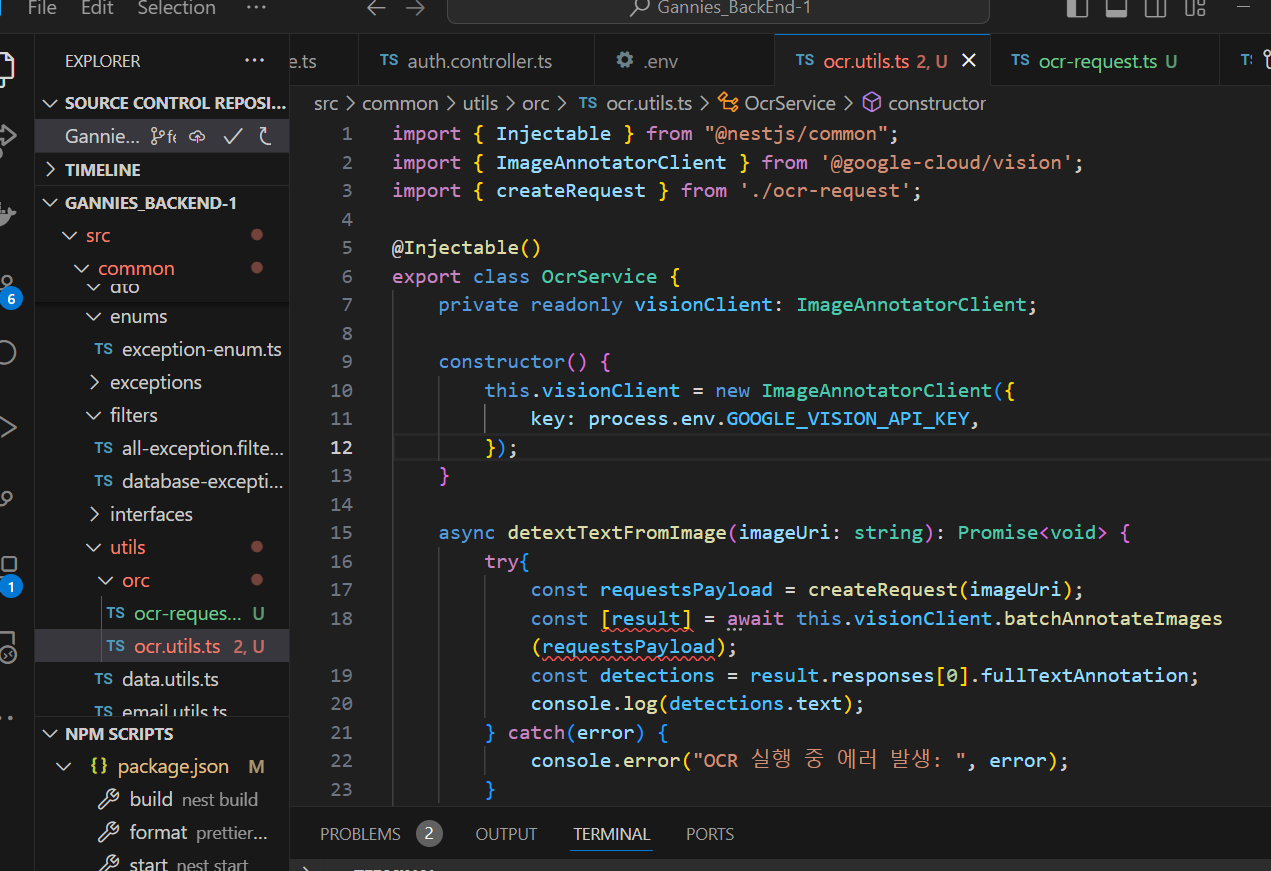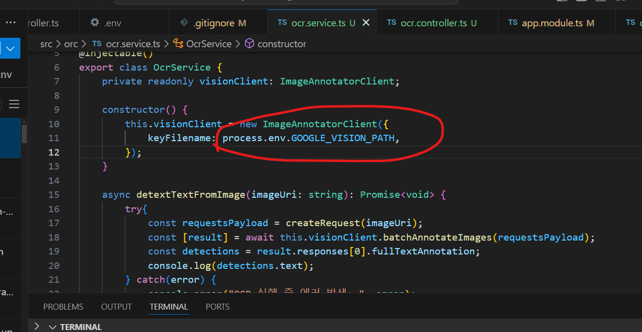 - NestJS에서 OCR 라이브러리를 불러올 때 이 키 파일의 경로를 환경변수로 설정해서 클라이언트를 생성해야 한다.