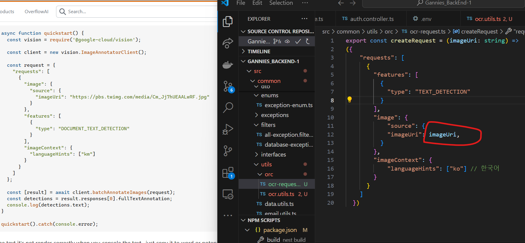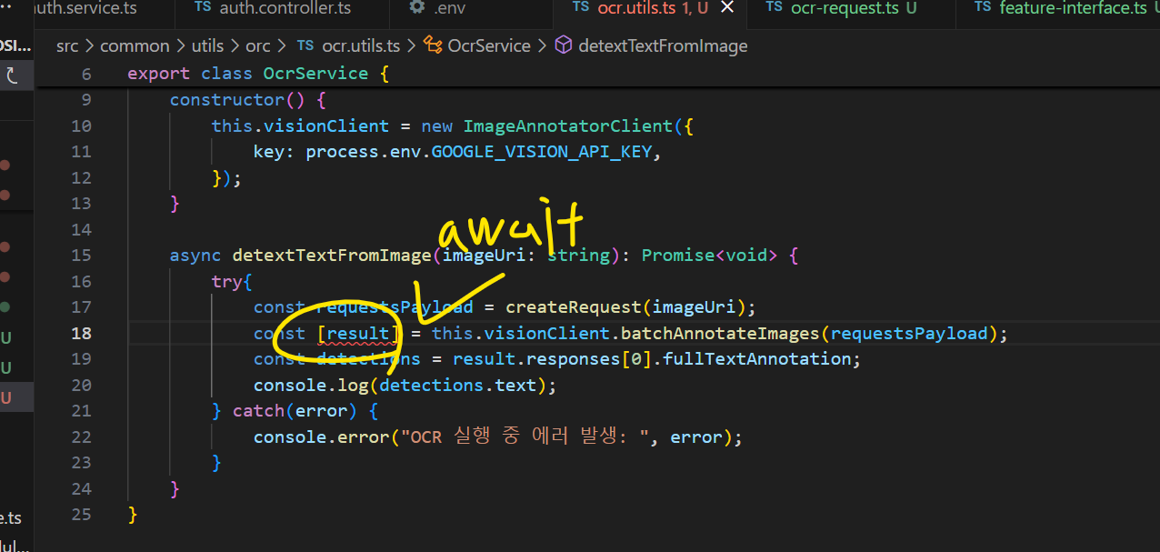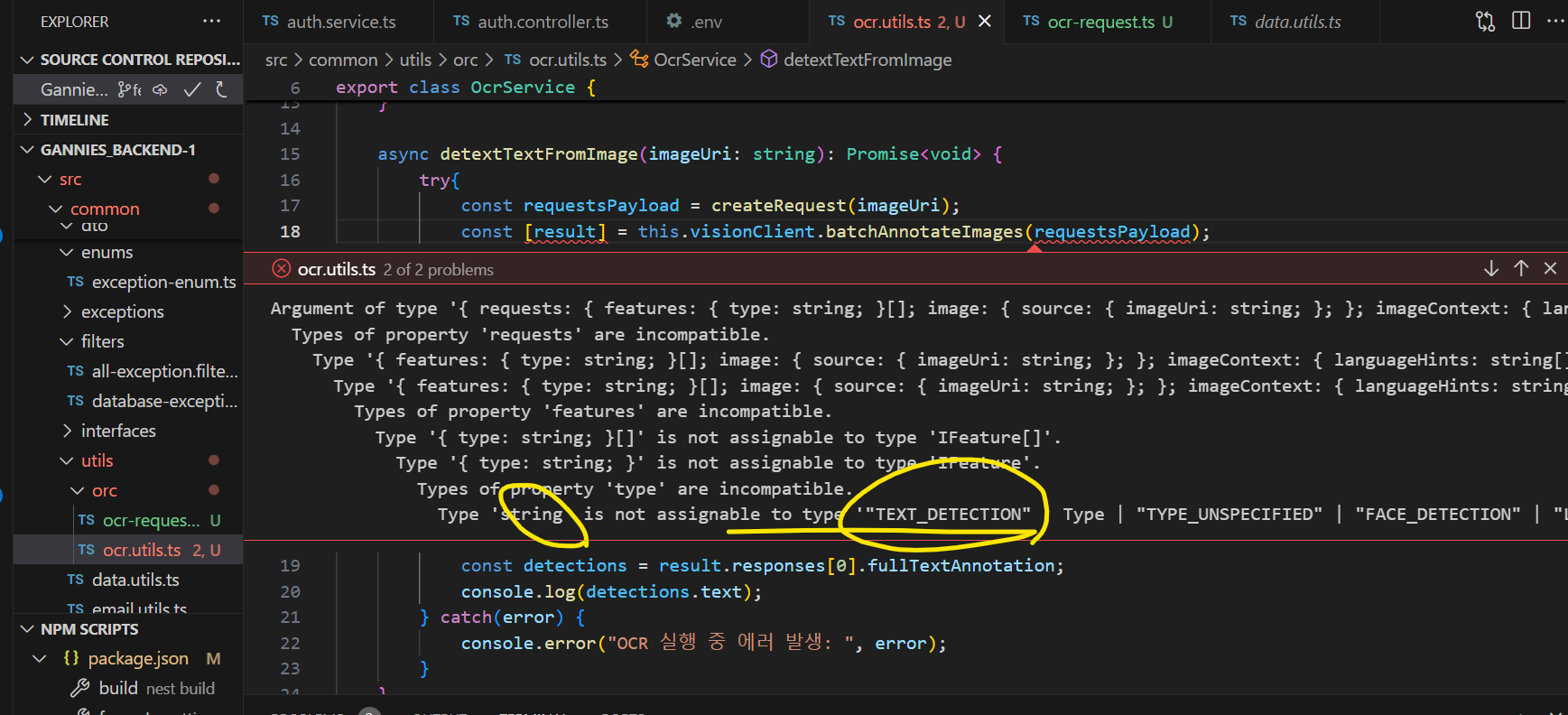 [중간이들] Google Cloud API로 NestJS에 OCR 기능 추가 - 타입 오류 해결 및 원하는 문자열 추출 본문