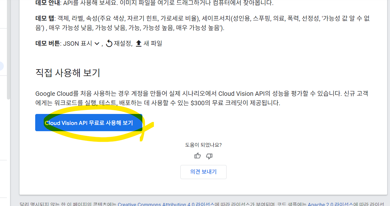 여기서 'Cloud Vision API 무료로 사용해 보기'를 클릭한다.