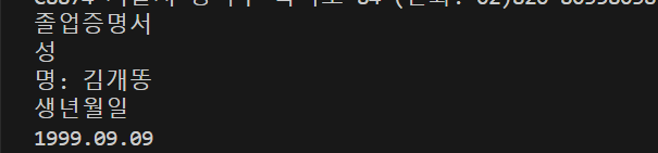 '성'과 '명' 사이에 공백이 있다보니 이렇게 출력이 되었다.