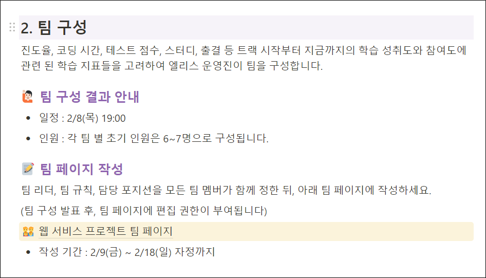 다행히 이후 기수부터는 자율 팀 결성 방식으로 바뀌어 이 부분은 개선된 것으로 알고 있다.