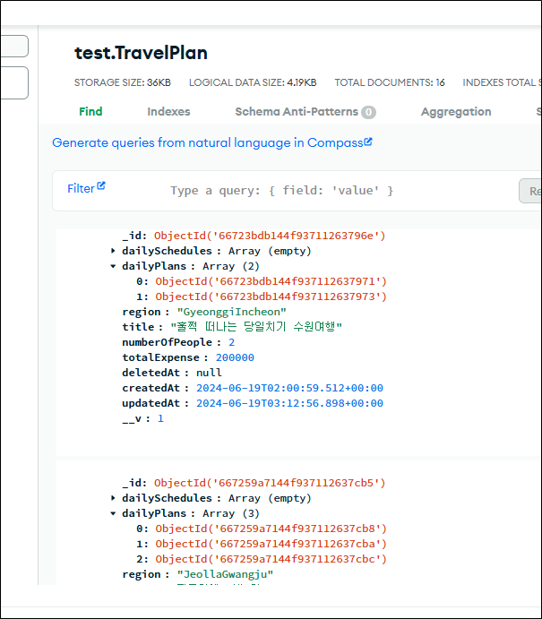 - Atlas 에서는 TravelPlan의 dailyPlans 안에 DailySchedule이 잘 들어가 있음.