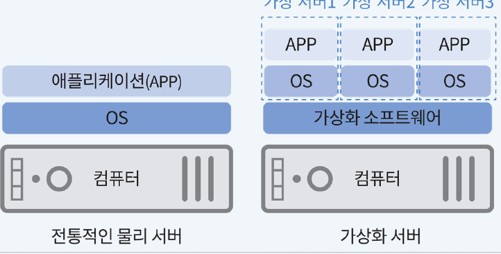 - 물리적 서버 위에 가상 인스턴스(가상머신/컨테이너) 생성