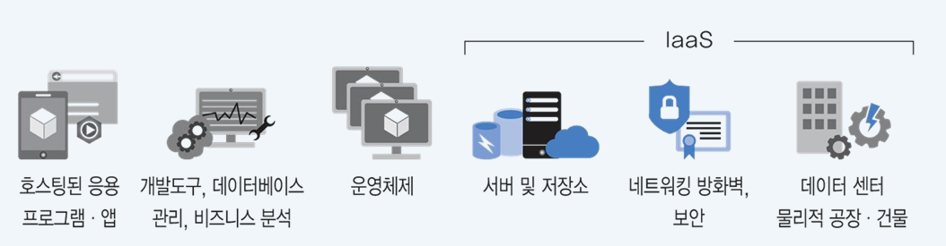 CSP (하드웨어 제공) | OS, 미들웨어, 애플리케이션, 데이터 | 서버, 스토리지, 네트워크 등 인프라를 가상화해 제공. 사용자는 인프라 직접 제어. |
