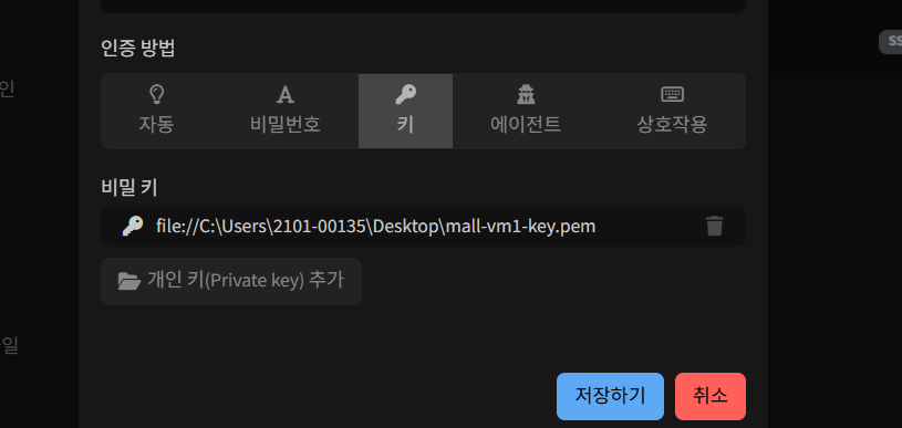 비밀키: 저장한 키 파일 경로 열기