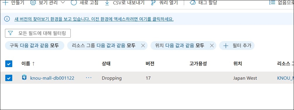 - 서버 이름: Azure 전역에서 고유해야 함 (knou-db01 등)