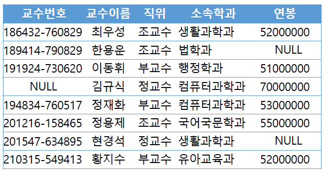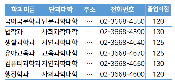 ex. '02-3668-4650'은 컴퓨터과학과의 전화번호에 해당되는 컬럼값