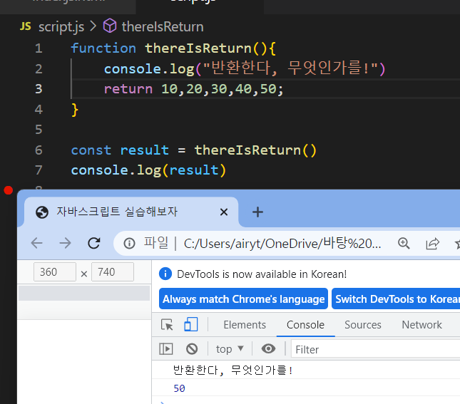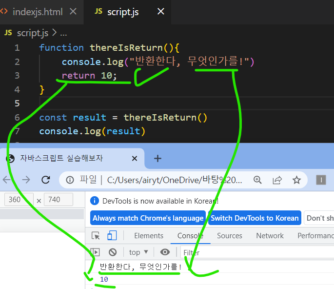 함수가 데이터를 반환하려면, '이 데이터를 반환한다'라는 구문을 함수 내부에 추가해 주어야 함.
