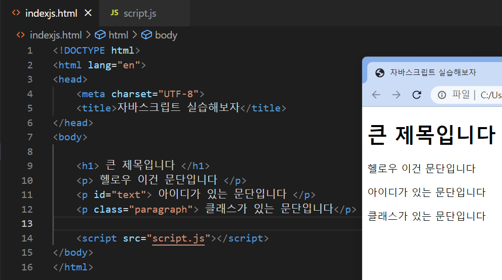 사진 오른쪽 보면 브라우저에서 '렌더링'되는 걸 알 수 있음.