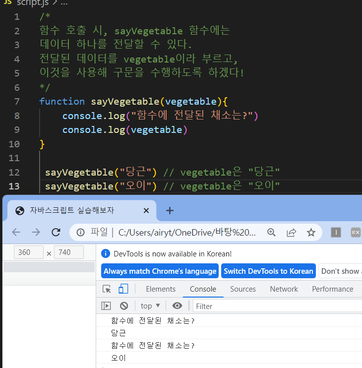 소괄호의 역할 : 함수가 실행될 때 사용할 재료(데이터)를 전달받는 것