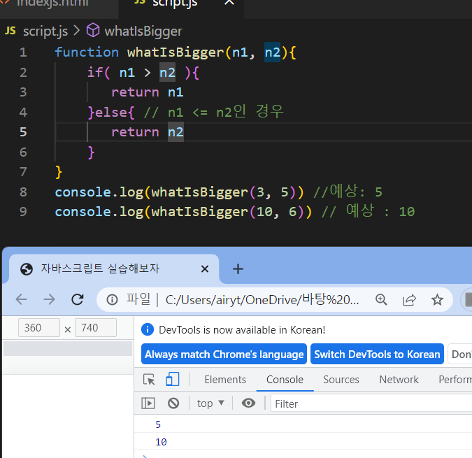 자바스크립트에서 할 수 있는 비교 : 대소 비교(크냐 작냐), 등가 비교(같냐 다르냐)